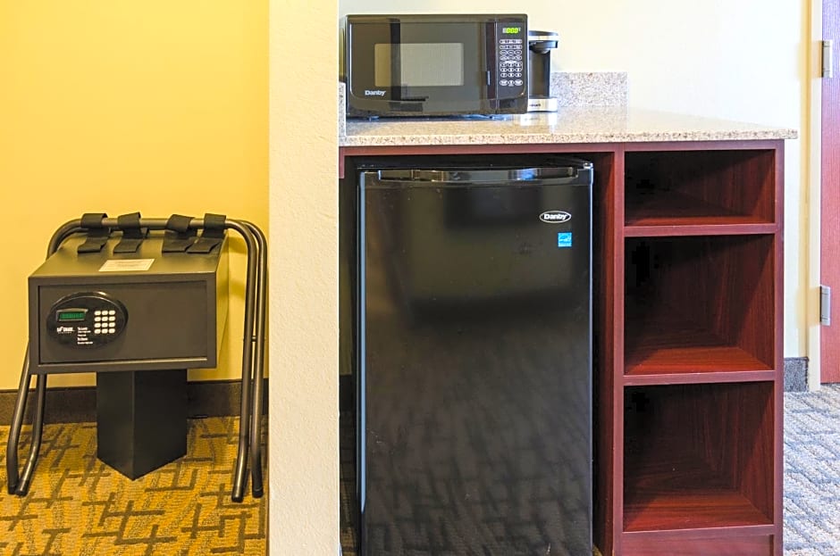 This accessible room includes WiFi, a microwave and a refrigerator. Accessibility features include mobility access, hearing accessibility, an accessible bathroom and visual alarm and notification devices for the doorbell and incoming phone calls